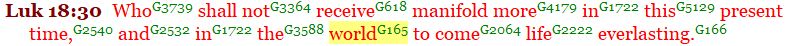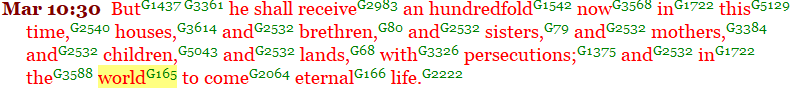 Another “world” or “age” was coming very shortly in their future in which eternal life would exist. Luke 20:35, 18:30, Mark 10:30