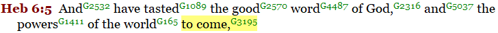 The New Testament writers also wrote often about the new “age” or “world” that was about to come. Ephesians 1:21, Hebrews 6:5