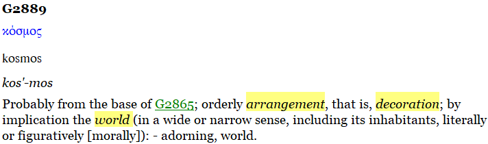 There are many more verses where the word “kosmos” is translated into the English word “world”. From these few examples cited we can get a feel for how the Greek word “kosmos” is used in the Bible.