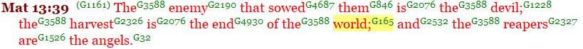 When the disciples asked Jesus, “….what shall be the sign of thy coming and of the end of the world?”, the word “world” here is translated from the Greek word “aion” or “age”. Matthew 24:3