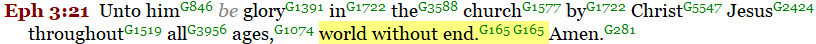 In all of these Scriptural examples, the Greek word “aion” refers to their present “world” or “age” in which they lived.