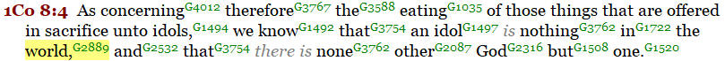 Another example is in 1 Corinthians 8:4. In this verse, we see the word “world” refers to the whole world because He is God of the whole Universe.