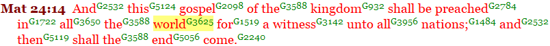 Matthew 24:14, in its proper context, was already fulfilled. No doubt, we still have a commission today to go everywhere preaching and teaching this same Gospel message that Jesus and the Apostles taught, but not to produce the second coming of Jesus. Jesus and His Kingdom is here right now with us.
