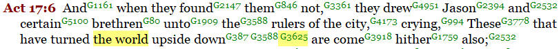 In Acts 17:6, we read about the disciples who were turning their “world” (oikoumene) upside down with the Gospel message. Clearly, we can see from the context that the meaning of the word “world” (oikoumene) is referring to the Roman Empire.