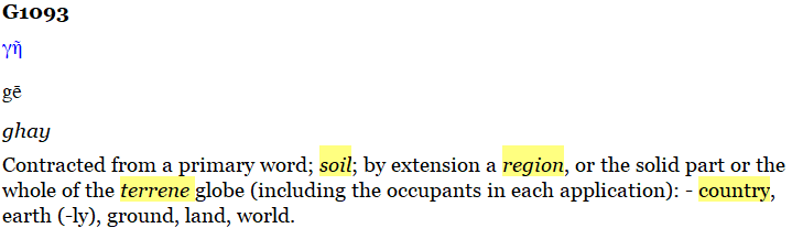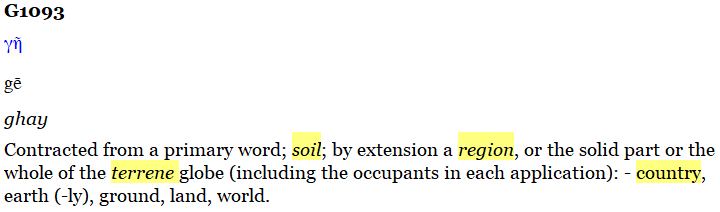 The Greek Word for Earth is G#1093 - Ghay or Ge and refers to the Physical land or region they were in