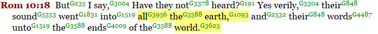 Romans 10:18 But I say, Have they not heard? Yes verily, their sound went into all the earth, and their words unto the ends of the world.