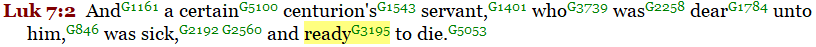 In Luke 7:2, we read about the centurion’s servant who was ready (“mello”) to die.