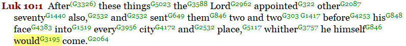 In Luke 10:1 we find Jesus sending the disciples out two by two into every city where He himself would come (“mello”) shortly.