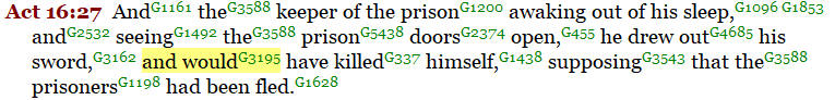 In Acts 16:27, we read about the keeper of the prison when he noticed the prison doors open, “…. he drew out his sword and would have killed (“mello”) himself supposing that the prisoners had been fled.”