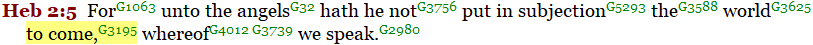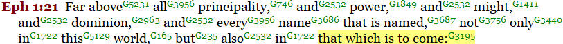 Another reference to the nearness of the “world to come”; Ephesians 1:21, “…. not only in this world, but also in that which is (“mello”) to come.”