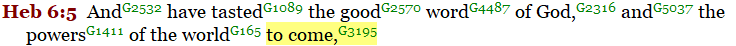 The word “mello” is also used in Hebrews 2:5 and in 6:5 denoting the nearness of the “world to come”.