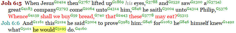 In John 6:5-6, we see Jesus setting the stage for His miracle of the feeding of the 5,000. He questioned Philip “….to prove him: for he himself knew what he would do.”(“mello”) “Mello” was used in this passage to indicate that shortly Jesus was going to feed the 5,000.