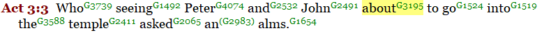 In Acts 3:3, we read that Peter and John were about to (mello”) go into the temple.