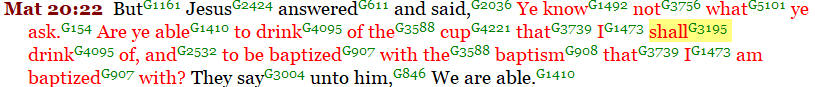 In Matthew 20:22, we see Jesus at the Last Supper saying, “…. are ye able to drink of the cup that I shall (“mello”) drink of…..”