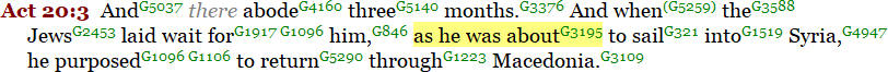 In Acts 20:3, we read about how Paul was about to (“mello”) to sail into Syria.