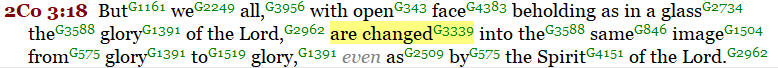 The word “changed” used in this verse comes from the Greek word “metamorphoo” which means “to transfigure or transform”. (Strong’s G#3339) “Metamorphoo” is used three more times in the Bible. Two of these uses were at the Transfiguration of Jesus Matthew 17:2, Mark 9:2 and the other is found in Romans 12:2.