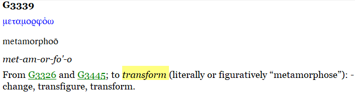 This was the “metamorphoo”, the transformation from the body of the Old Covenant Mosaic Law to the New Covenant Body of Jesus Christ. This was the change that was taking place in 2 Peter 1:19: “….until the day dawns and the morning star rises in your hearts.”