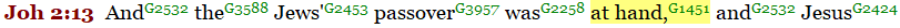 Now let’s look at some of these usages of “eggus”. In John 2:13, we read about the Jews’ Passover was at hand, “eggus”. This use of “eggus” denotes that the Passover was very near in time.