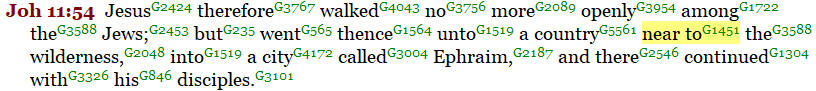 In John 3:23, we find another example of “eggus” used in this same context. “And John also was baptizing in Aenon near (‘eggus’) Salim…”