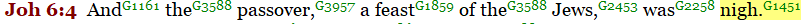 Again, in John 6:4, the Passover, a feast of the Jews, was near (eggus); it wasn’t very far off at all.