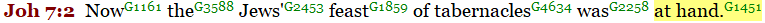 In John 7:2, we read about another feast of the Jews’ which was at hand, “eggus”.