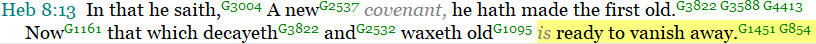 In Hebrews 8:13, we see the word “eggus” translated as “ready”.