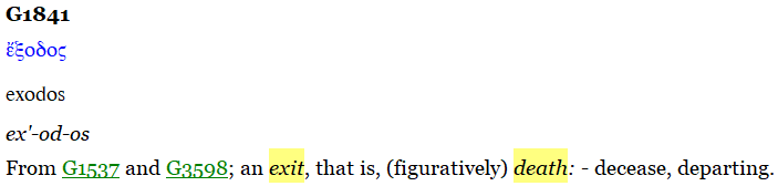 In Luke 9:31, the Scripture speaks of the beginning of the Second Exodus that began at Calvary with the Blood of Jesus, the Lamb of God. In verse 31, the word “decease” in the Greek means to exit, to depart, or exodus. Strong’s G#1841