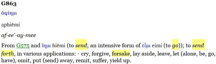 The word "left" comes from the Greek word "aphiemi" Strongs G#863 which means "To send forth or to forsake".