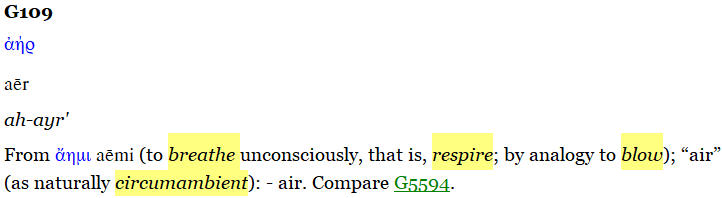 Therefore, “aer” means “to respire, to blow air”. This Greek word “aer” is referring to the “air” that is all around us, the air that we breath.